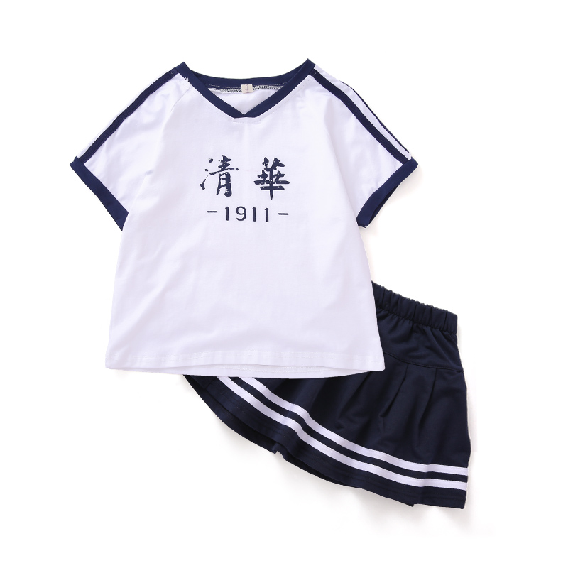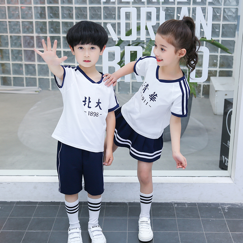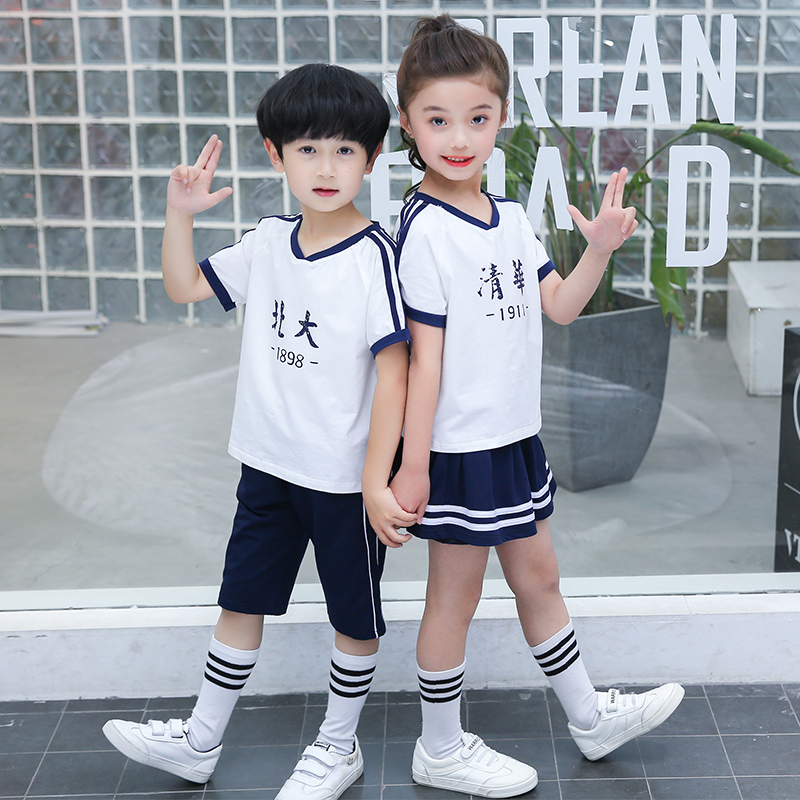 3-8-year-old male and female baby Qinghua Peking University T-shirt suit 2022 Summer new male and female baby handsome and damp