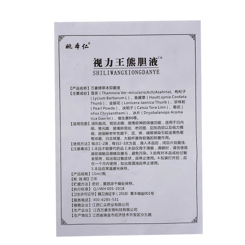 Yao Benren Vision Wang Xiong bile liquid protective eye relieve fatigue dry astringent eye drops to go to red blood and silk antibacterial