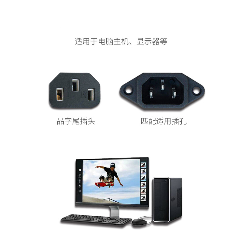 Desktop Power Cord Three-Core Plug Host Display Print Projector Triple Hole Extension Power Cord Plug