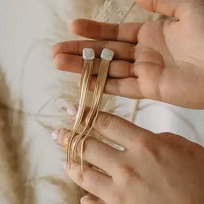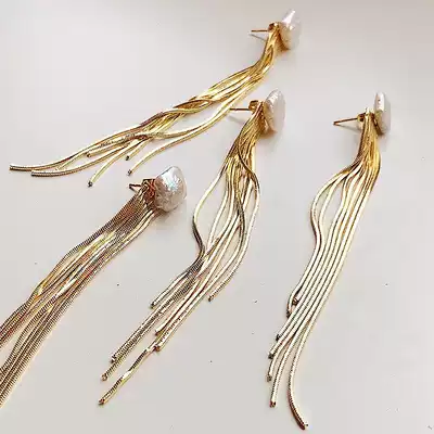 Portuguese niche persta retro Baroque Pearl tassel earrings ins Net red temperament Joker Earring Girl