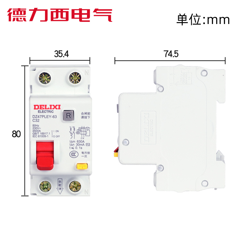 Delixi leakage circuit breaker DZ47PLEY 2P 32A 63A household 40A narrow open with leakage protection 2 circuits
