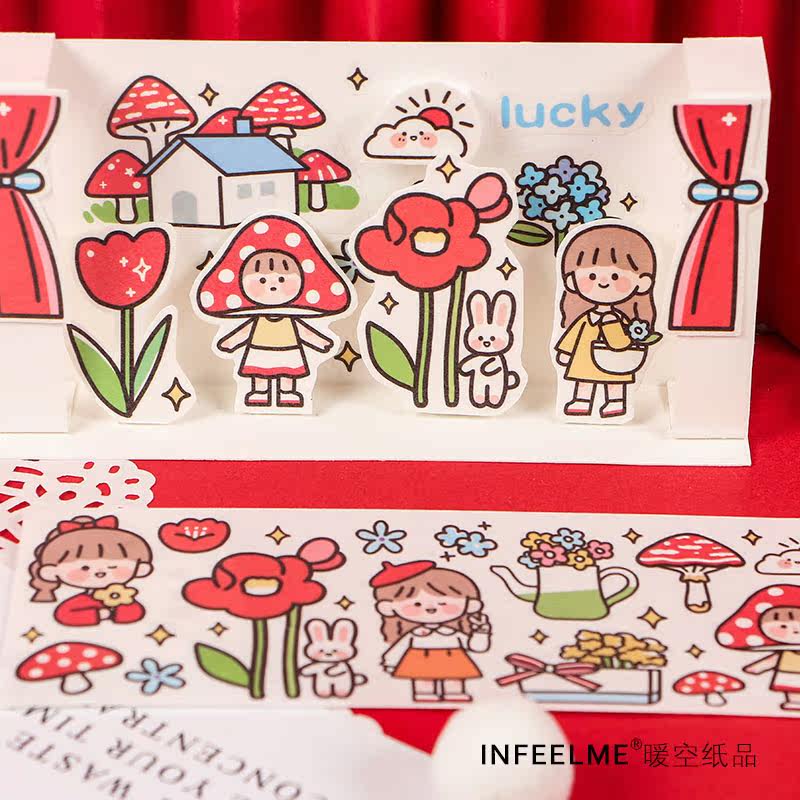 Infeel me cute cartoon strip and paper tape girl sharing outfit character material hand account collage