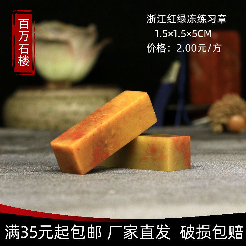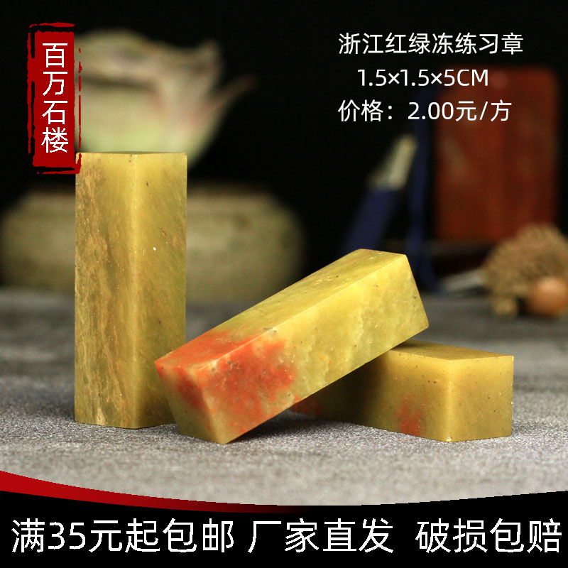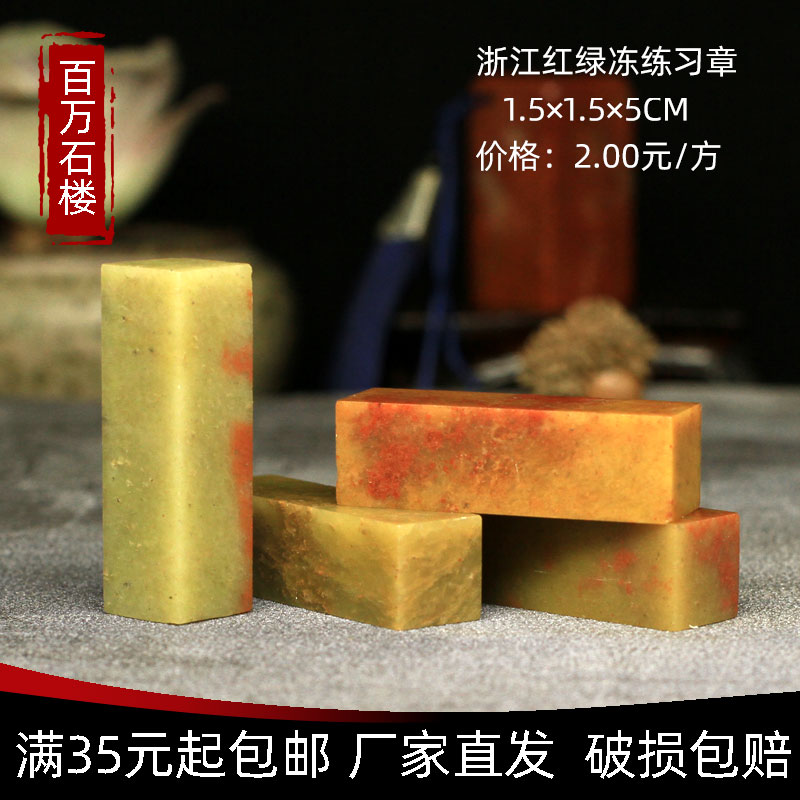 Shoushan Stone Zhejiang Red Green Freeze 1 5 * 1 5 * 5CM Indian Stone Practice Zhang Seal Engraving Seal Shoushan Beginners