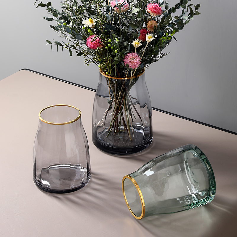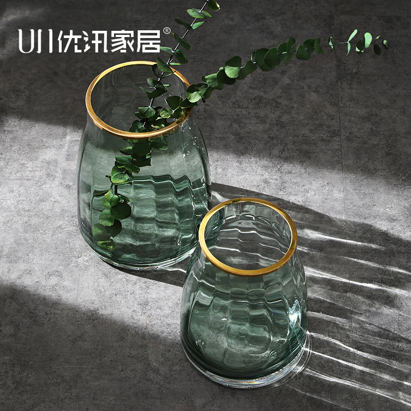 Nordic Light Lavish Sketching Gold Side Transparent Glass Vase Hem Floral Floral Living-room Dining Room Table Home Soft Adornment