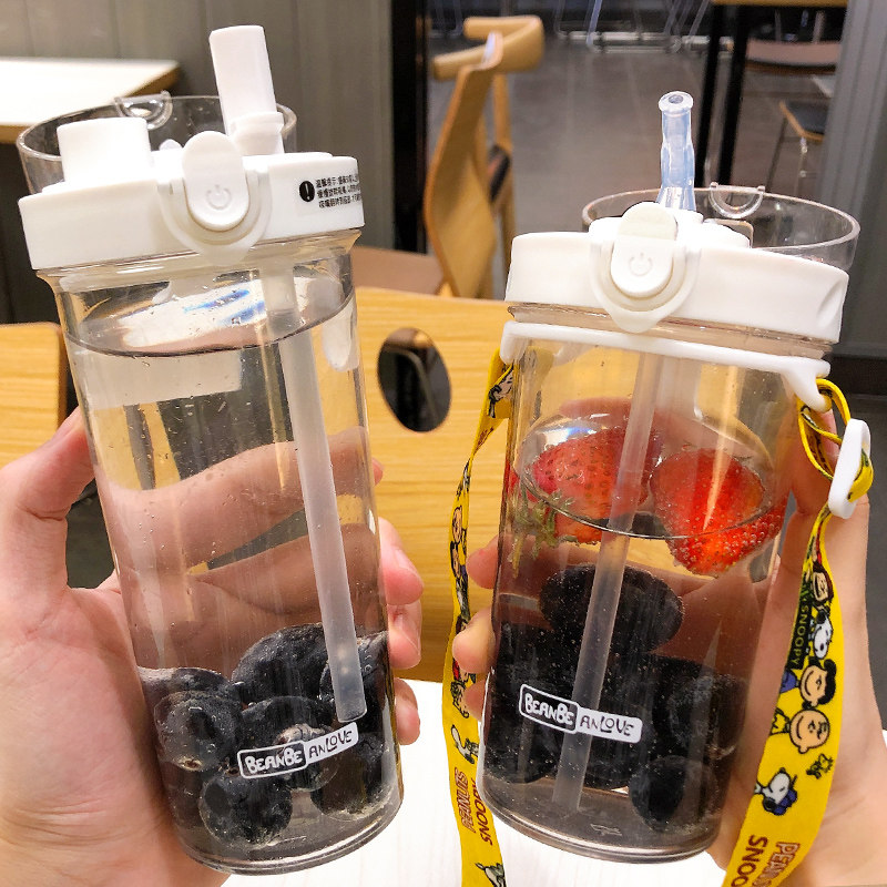 Korean version of suction tube Cup adult summer water cup female simple fresh anti-fall portable plastic cup creative personality trend