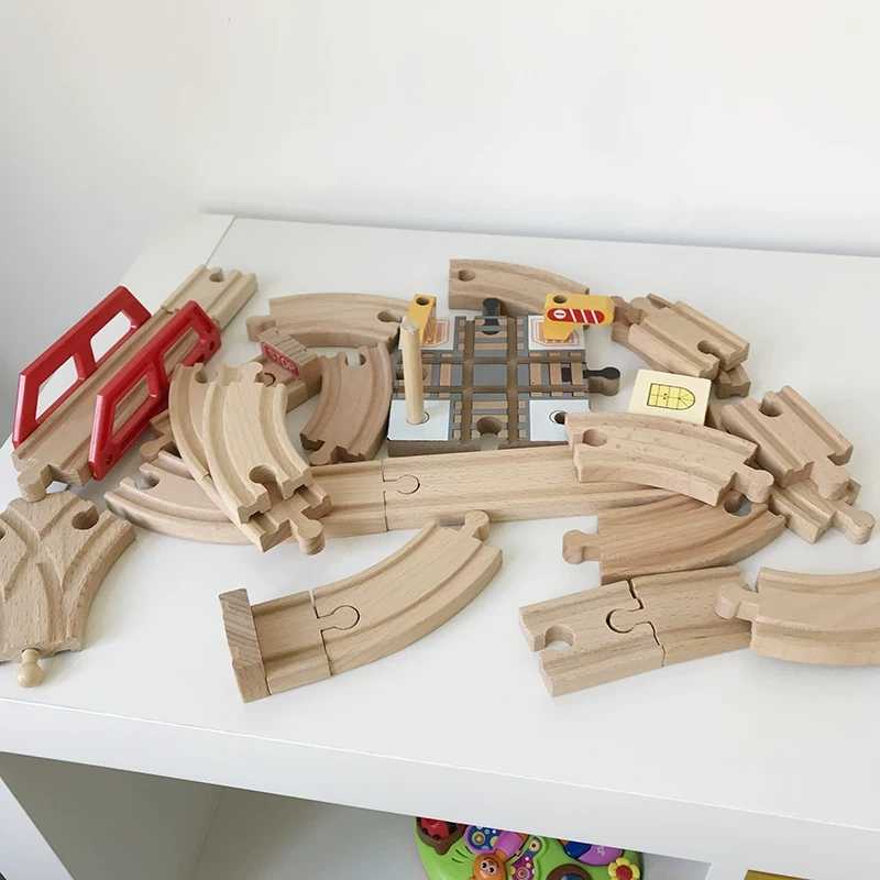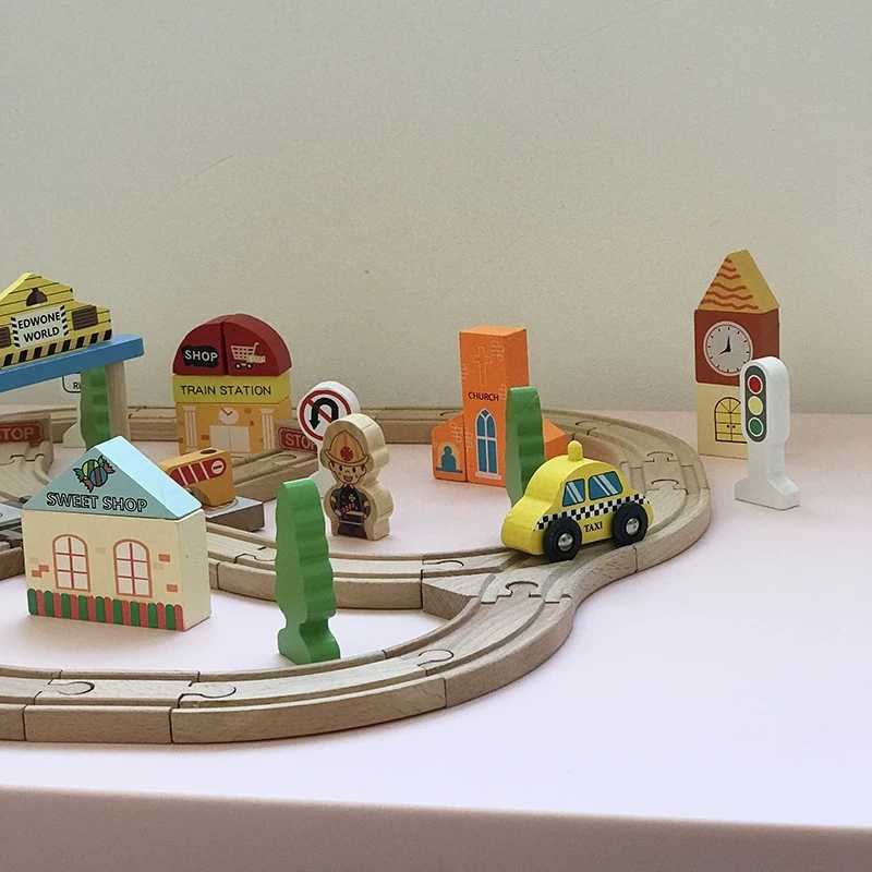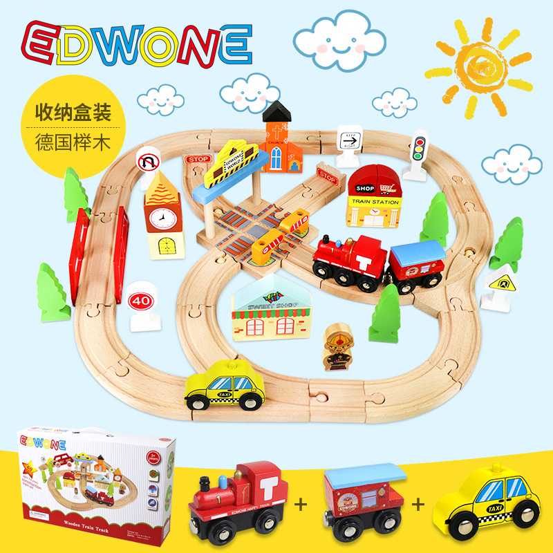 INS Han Feng Baby Beech Wooden Train Train Toys Solid Wood Children's Car Scene has passed the family track train