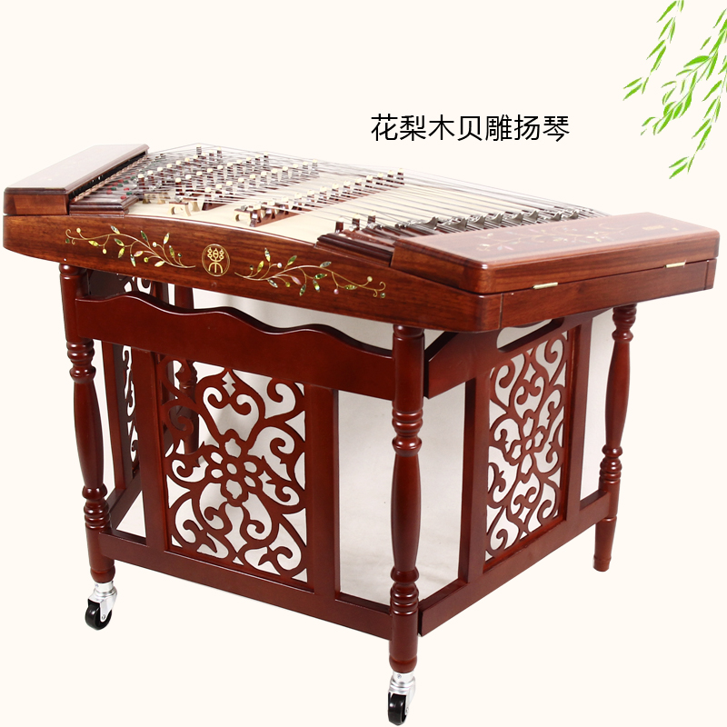 Yangqin instrument 402 Yangqin professional playing of red flower pear wood bay engraving Yang Qin Flowers Foreign Musical Instrument Manufacturer Direct