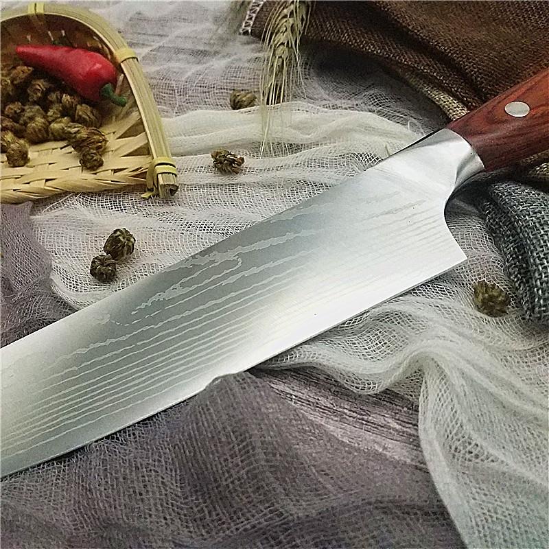 Red Wood Handle Grand Maersk Pattern Master Kitchen Knife Cut Vegetable Cut Meat Knife Cuisine Sashimi Knife Master Kitchen Knife West Style South Front Cutter