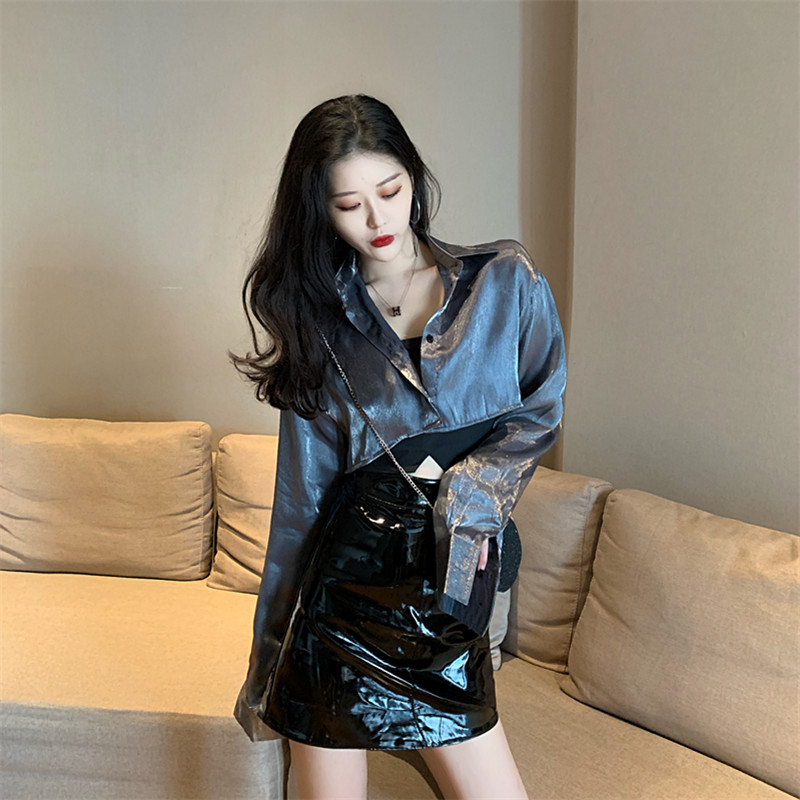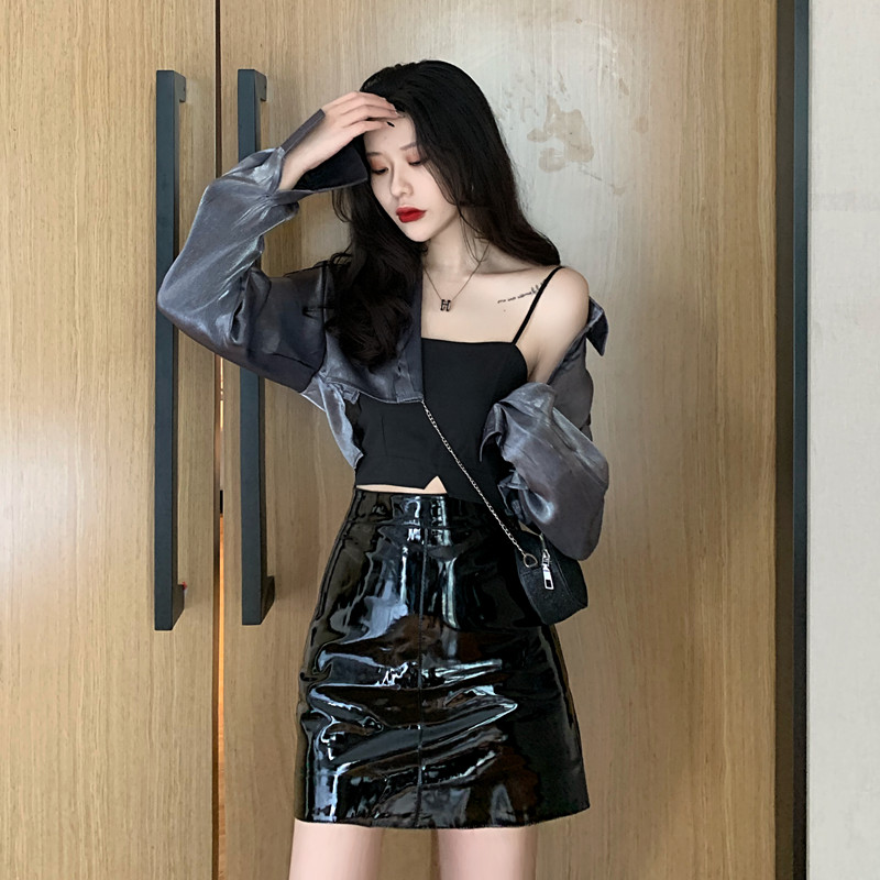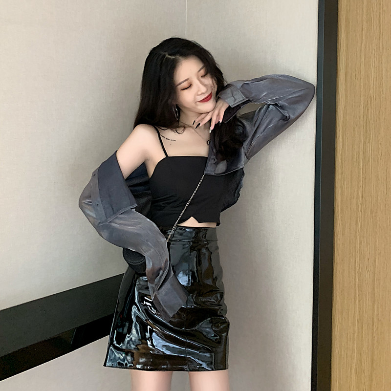 Summer 2021 new shirt women's design sense niche high-end top PU sequin suspender dress French suit