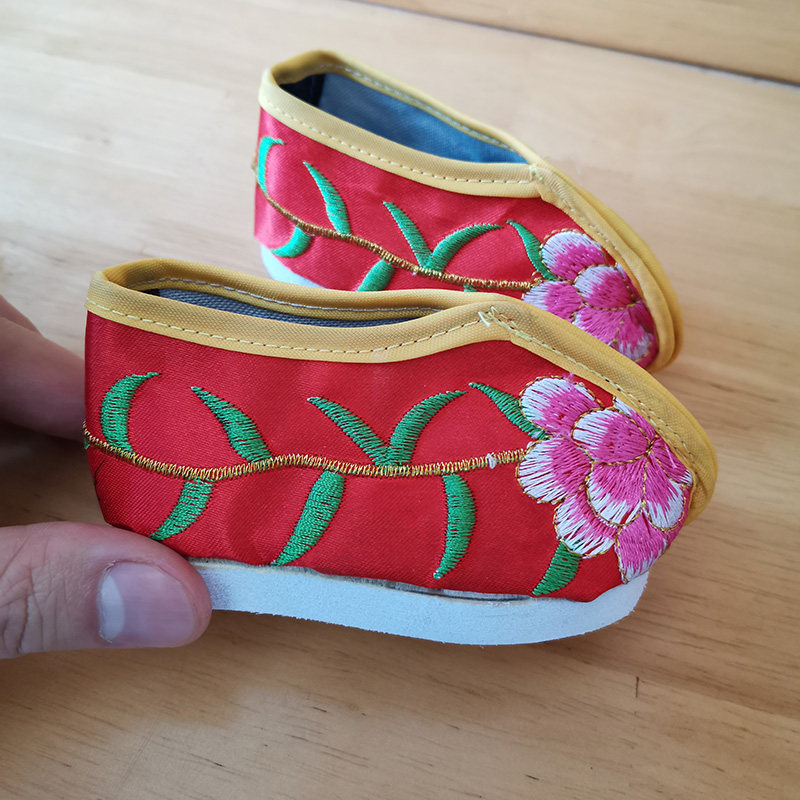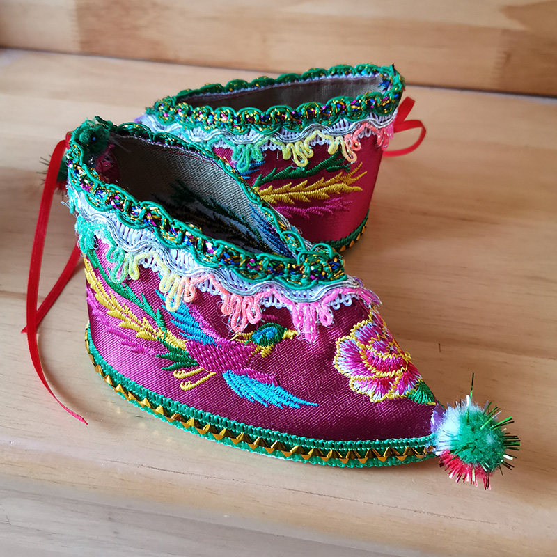 Bodhisattva lady's shoes pray for good fortune and shoes 3-inch golden lotus with embroidered shoes Bodhisattva Mazu Taishan Grandmother Little Fengshoes
