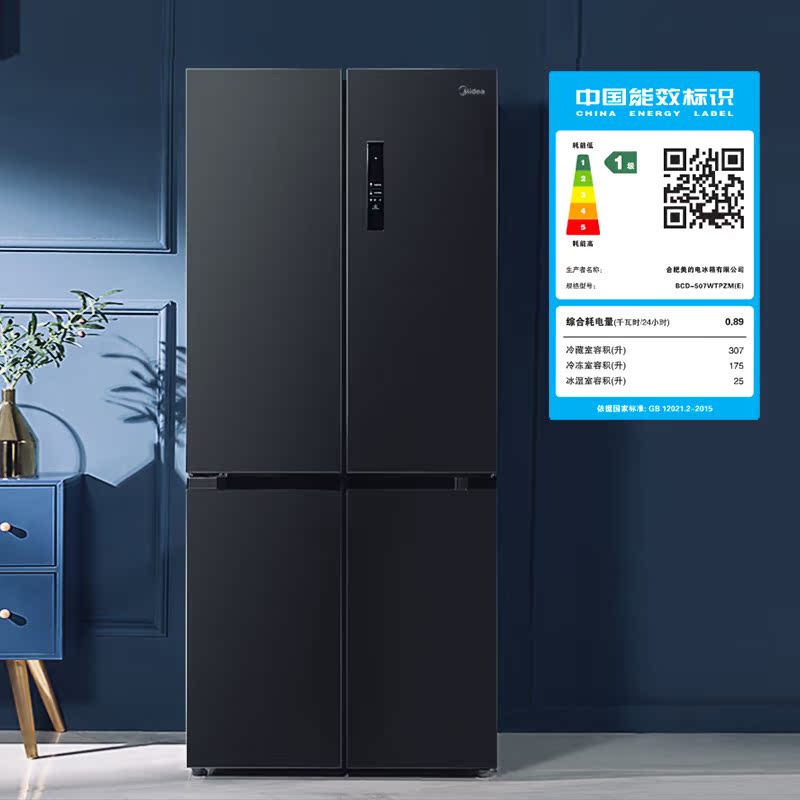 Midea cross door refrigerator household frost-free large capacity one-level energy efficiency ultra-thin 4 four-door double door 507