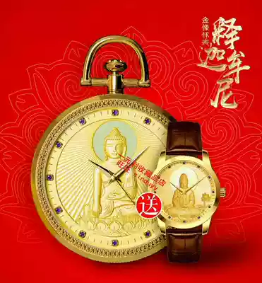 Shakyamuni Buddha Gold Statue Pocket Watch Buddha light shines on Shakyamuni Buddha Statue Commemorative Pocket Watch Collection Watch