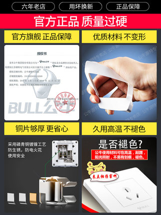 Bull two-open single control light switch button household light two-position single concealed 86 type panel double switch