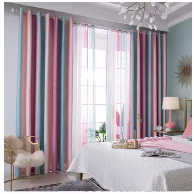 Curtains finished shading European-style living room simple modern bedroom cotton and linen full shading shading fabric free perforation installation