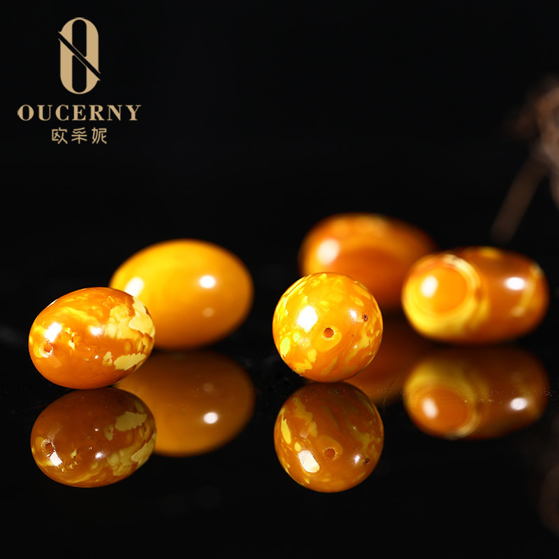 O Mining Nemy Wax Single Pearl Loose Beads Natural Old Wax Amber Pendant Round Pearl accessories Chicken Oil Yellow Dense Wax Diy Date Beads