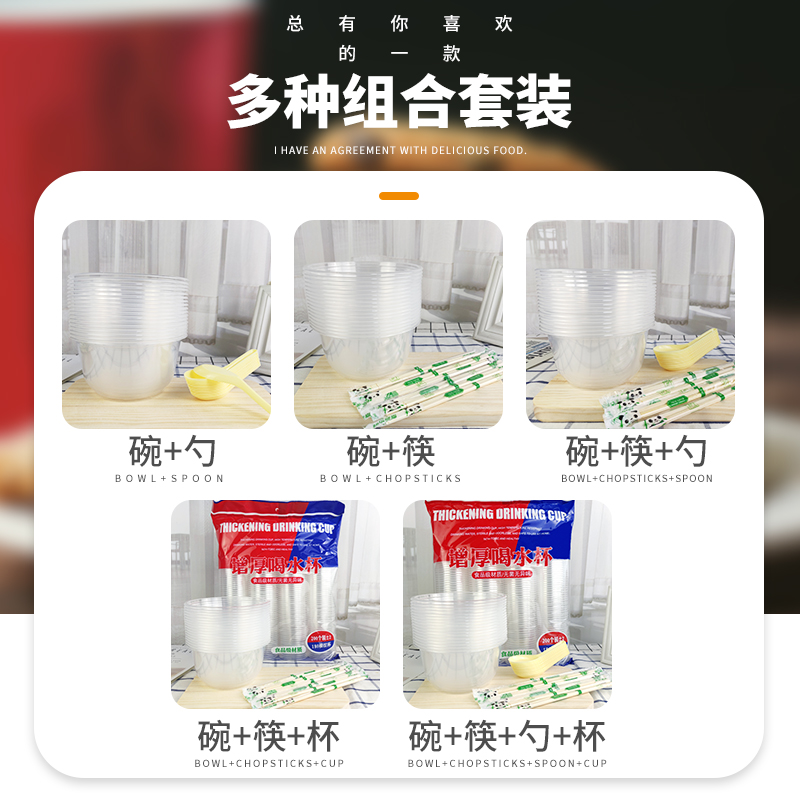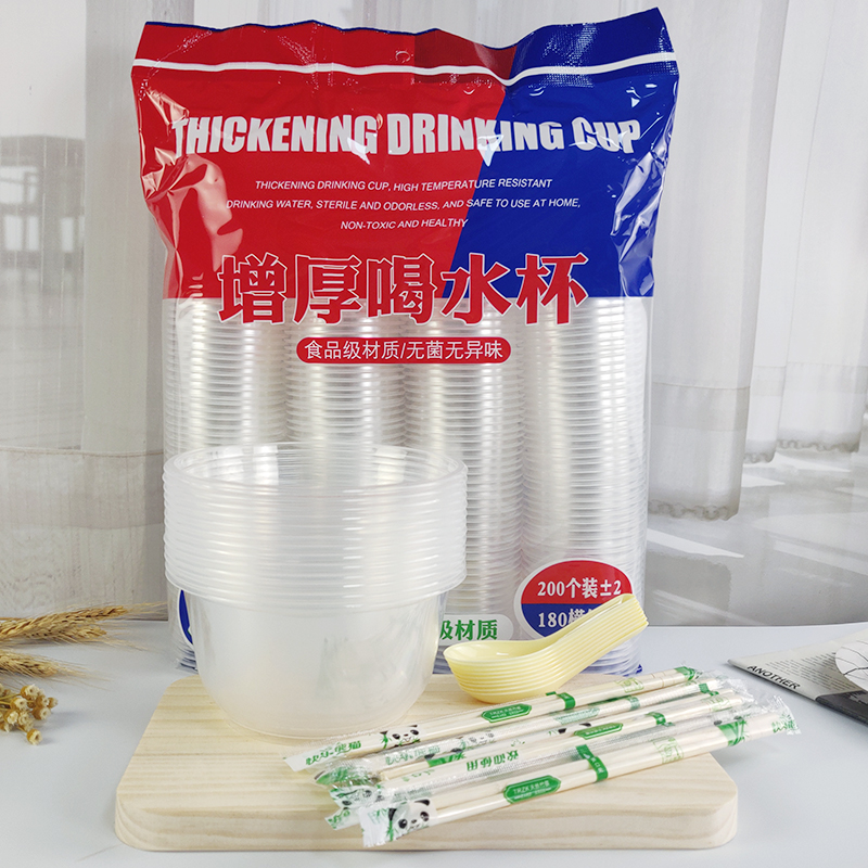 Disposable chopsticks set chopsticks spoon Plastic round lunch box Cup chopsticks spoon commercial thickened lunch box