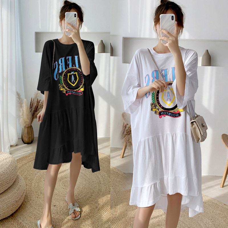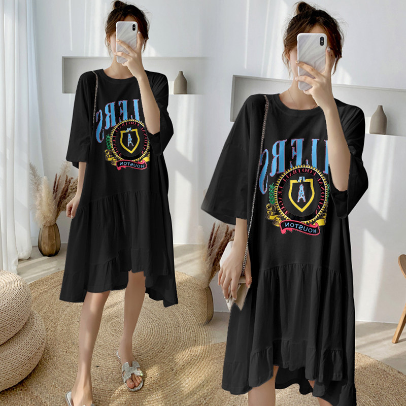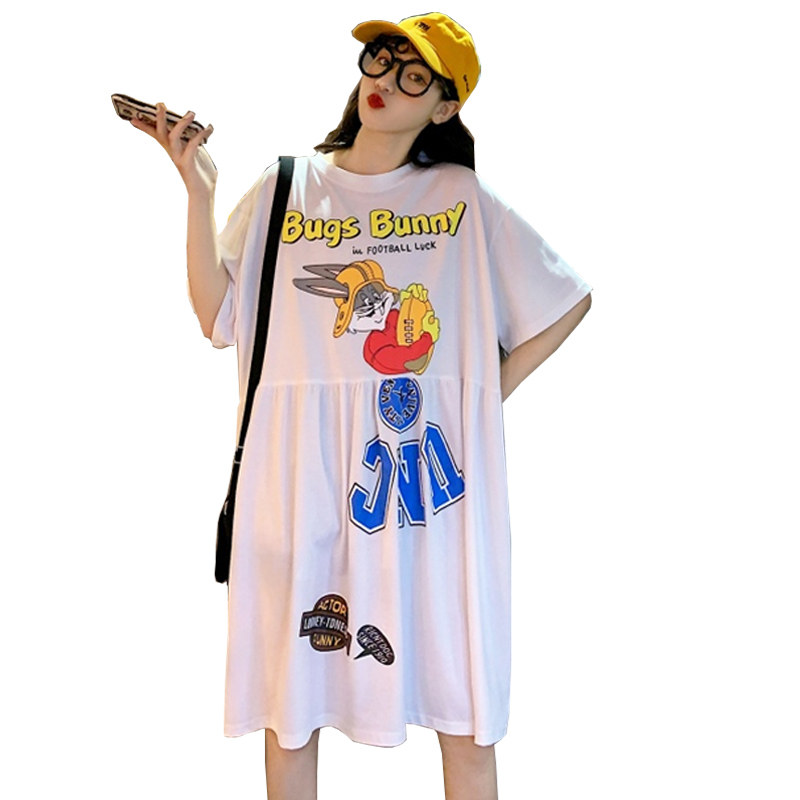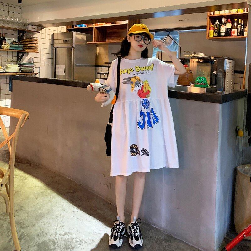 Pregnant woman Ocean dress Summer Short sleeves Han version Tidal Moms Loose large size 200 catty blouses Summer cartoon Pregnancy T-Shirt Dress