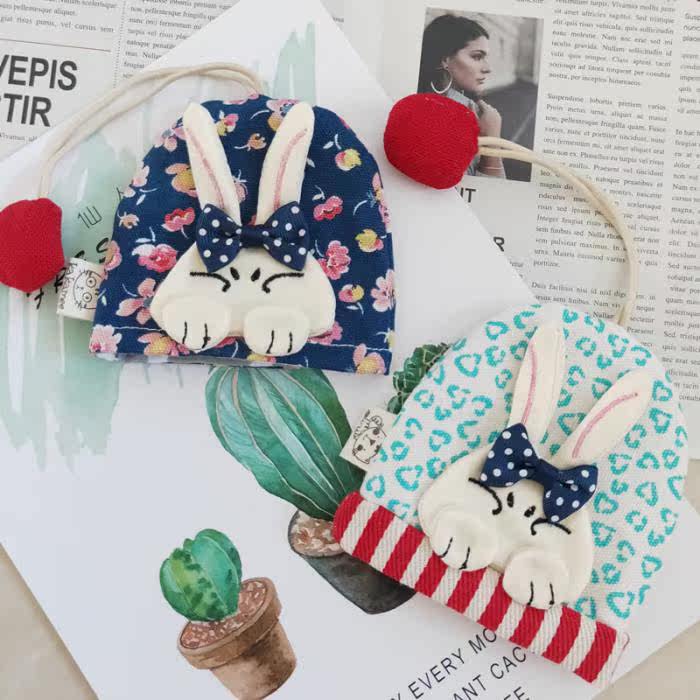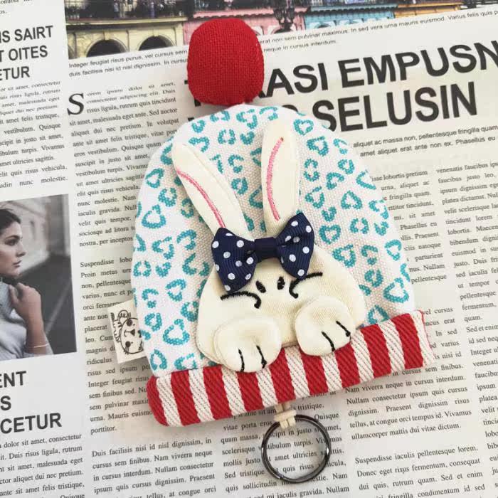 Han Style Cartoon Rabbit Embroidery Handmade Cloth Art Key Bag Pull-out Key Bag Girl Draw Rope Key Button