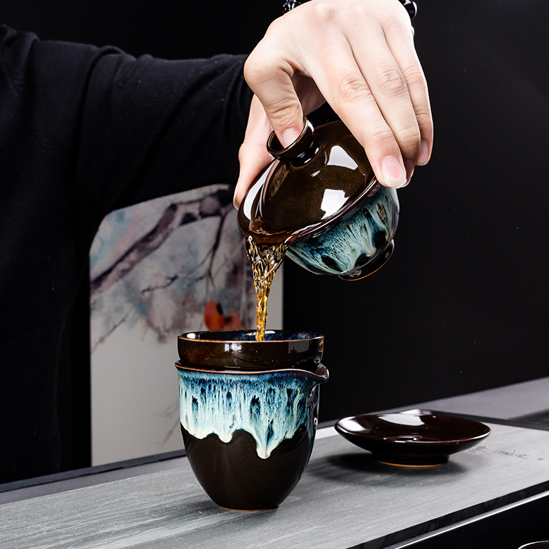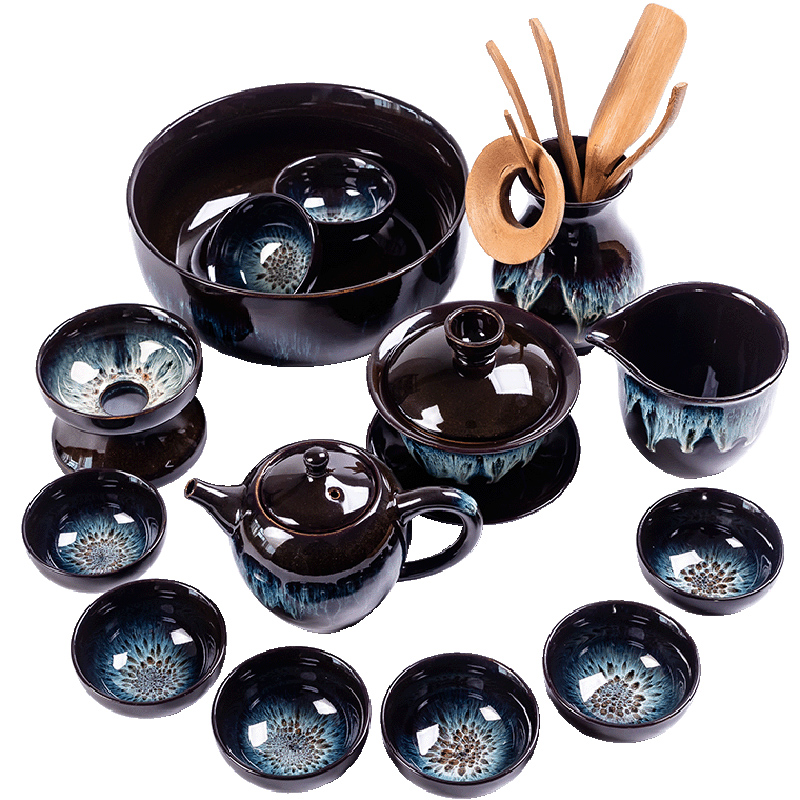 Kiln Change Utilitus Tea Furniture Set Group Home Brief Construction of ceramic Tianmu complete set teapot tea cup lid bowl small set of tea
