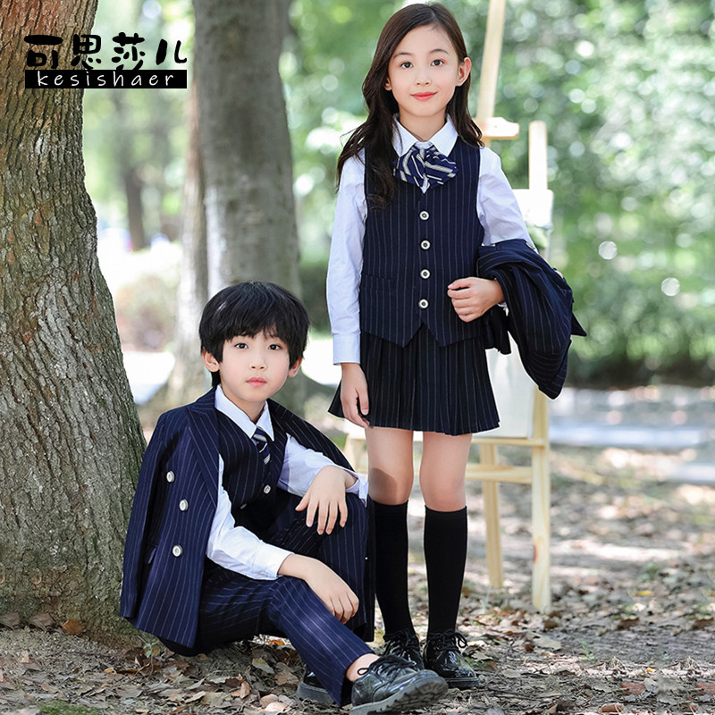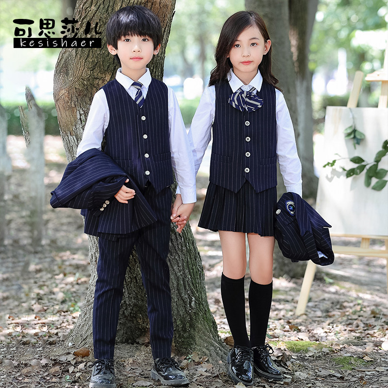 Boys three sets (jacket shirt pants) girl three sets (jacket shirt skirt) boys four pieces (jacket shirt machia pants) girl four pieces (jacket)