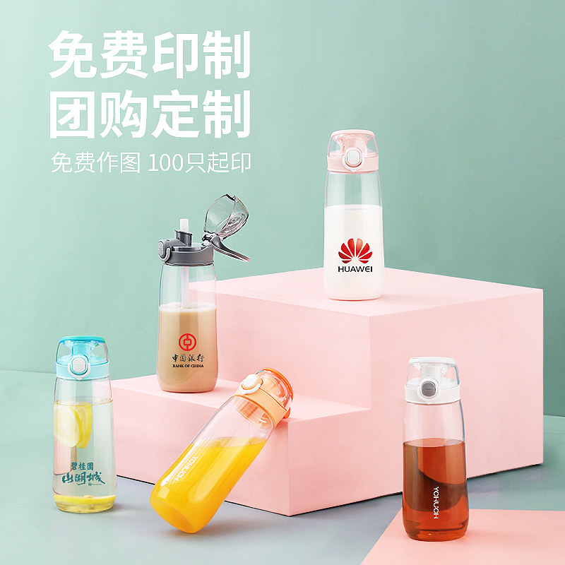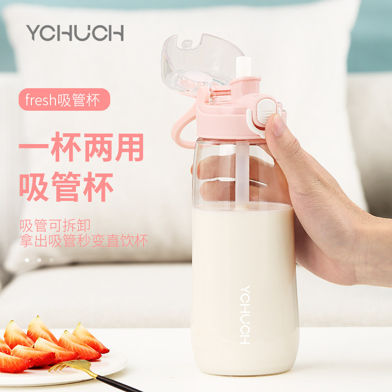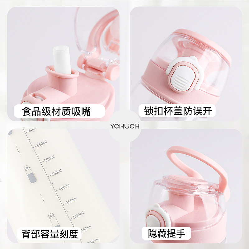Chuchen large-capacity plastic cup sports cup female portable straw cup ins wind cute girl summer tea cup