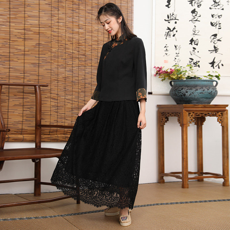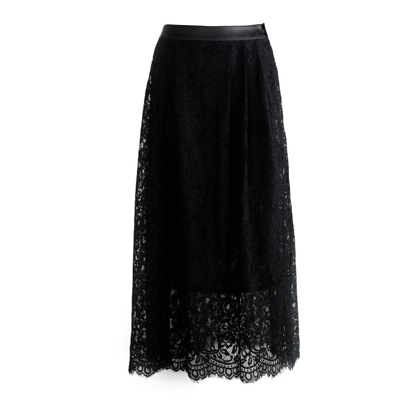 Autumn Water Ballad Original Black Lace half body dress Women 2022 Summer new display slim 100 hitch a long skirt to give back