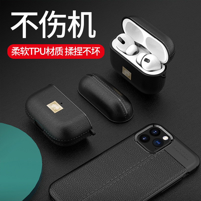 (black) AirPods Pro leather Silicone Protective Sheath (Tibetan cyan) AirPods Pro leather Leather Silicone Protective Sheath (green) AirPods