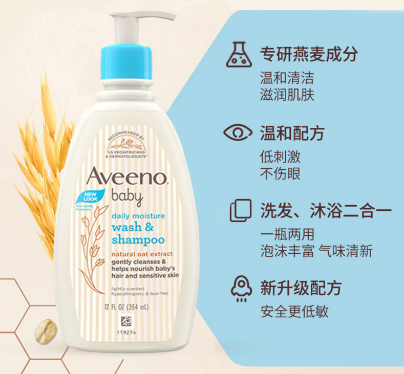 Aveeno Ai Wei Nuo Ai Wei Nuo newborn baby oatmeal baby special shampoo and shower gel two-in-one