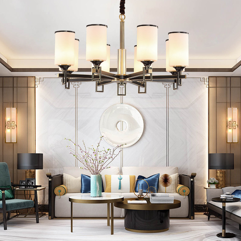 Modern Chinese all-copper pendant lamp New Chinese living room lamp light and luxurious crystal minimalist atmosphere home dining room pure copper lamp
