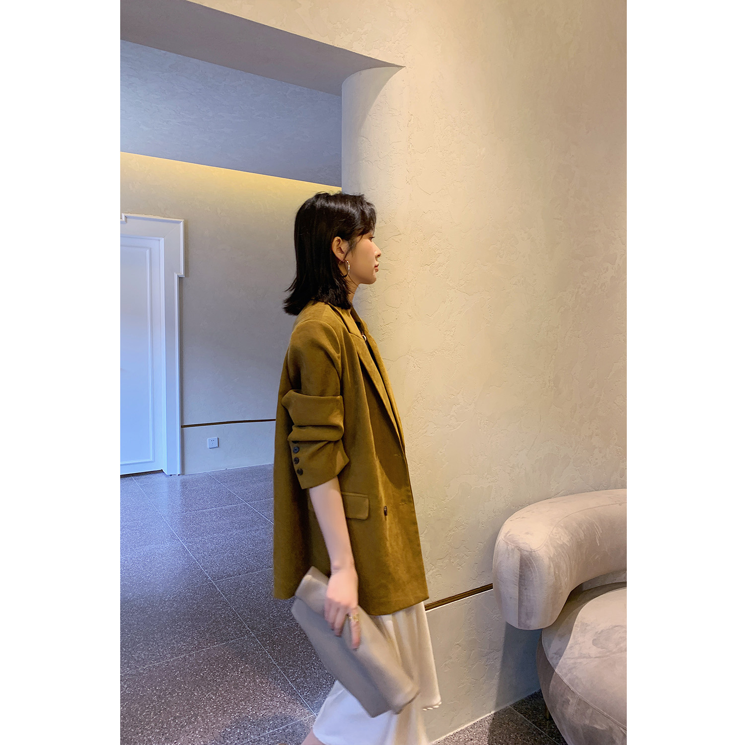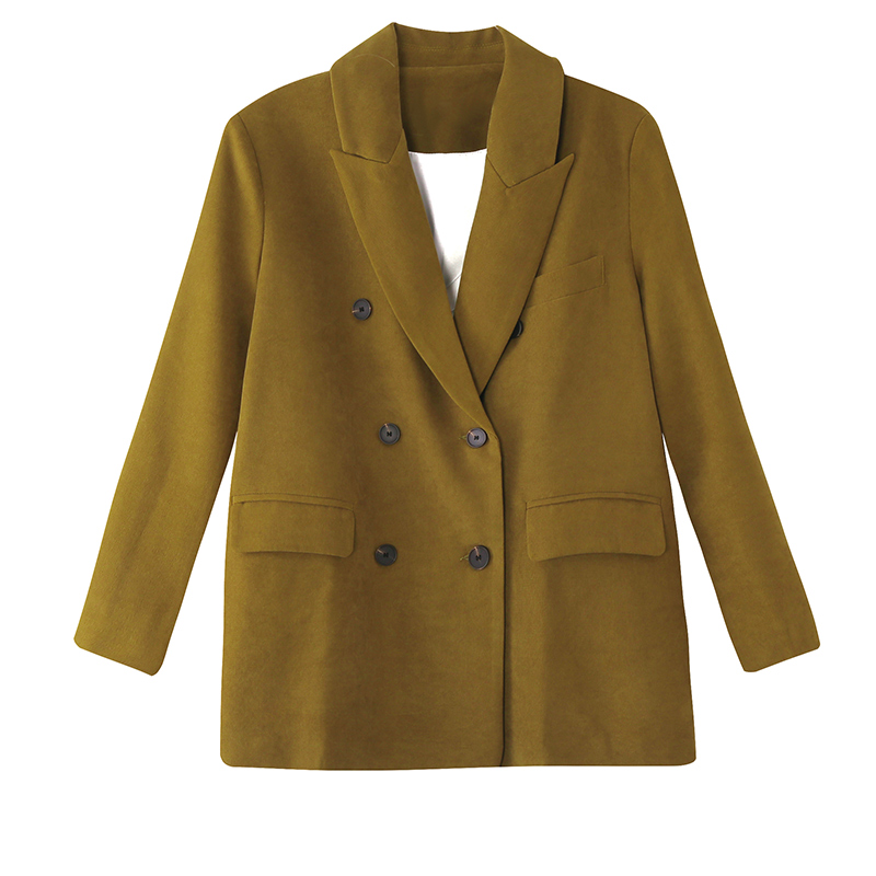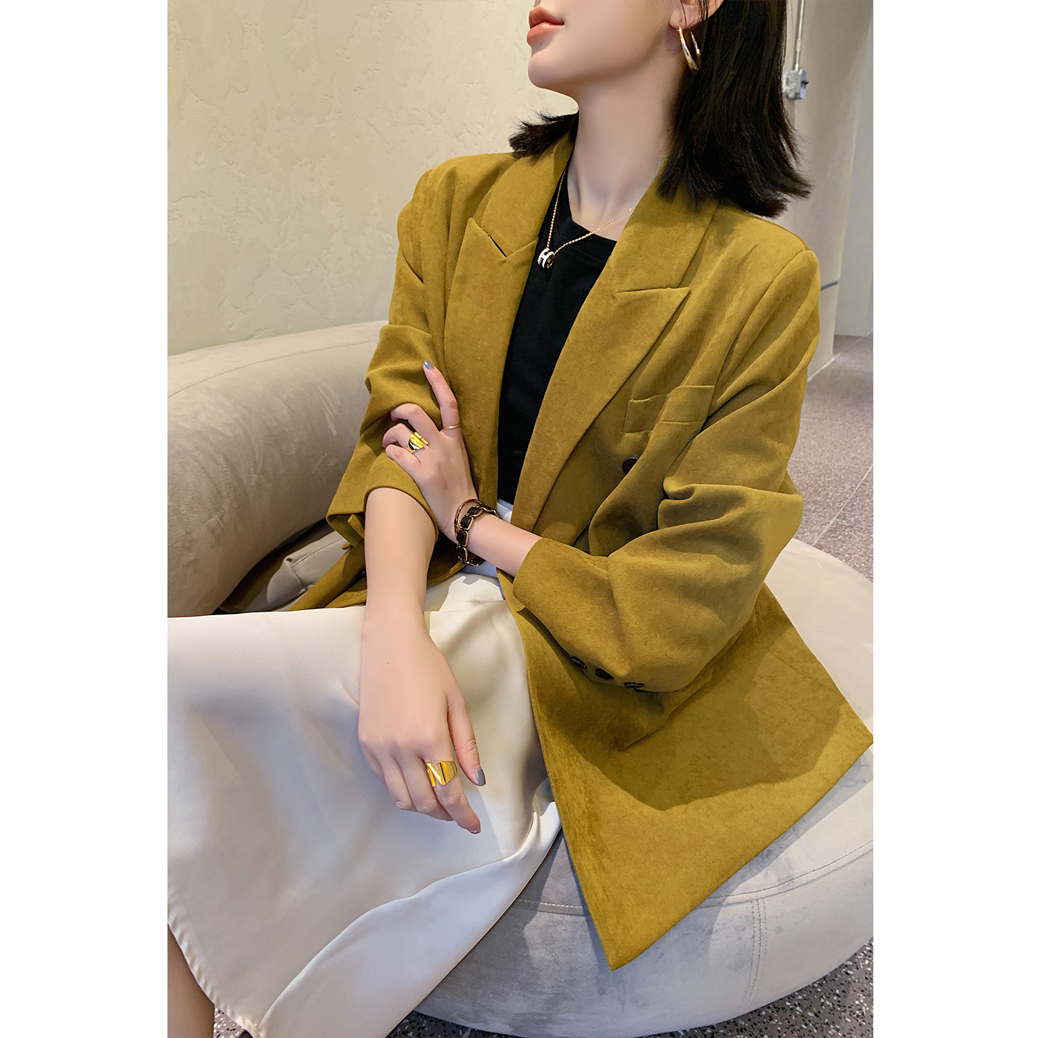Retro mustard green featured small suit female niche design Korean version casual British style double-breasted suit jacket