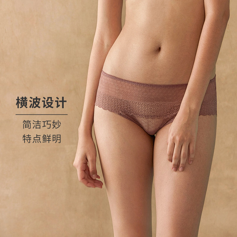 HSIA reverie full lace mid-waist women's four-corner pants pure cotton summer ultra-thin comfortable breathless underpants female