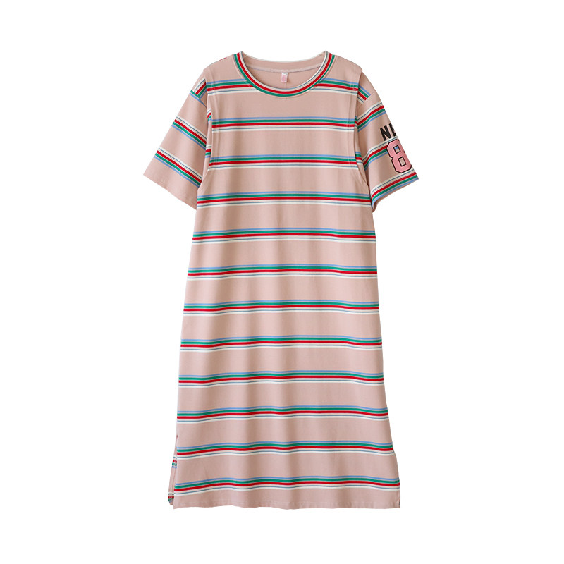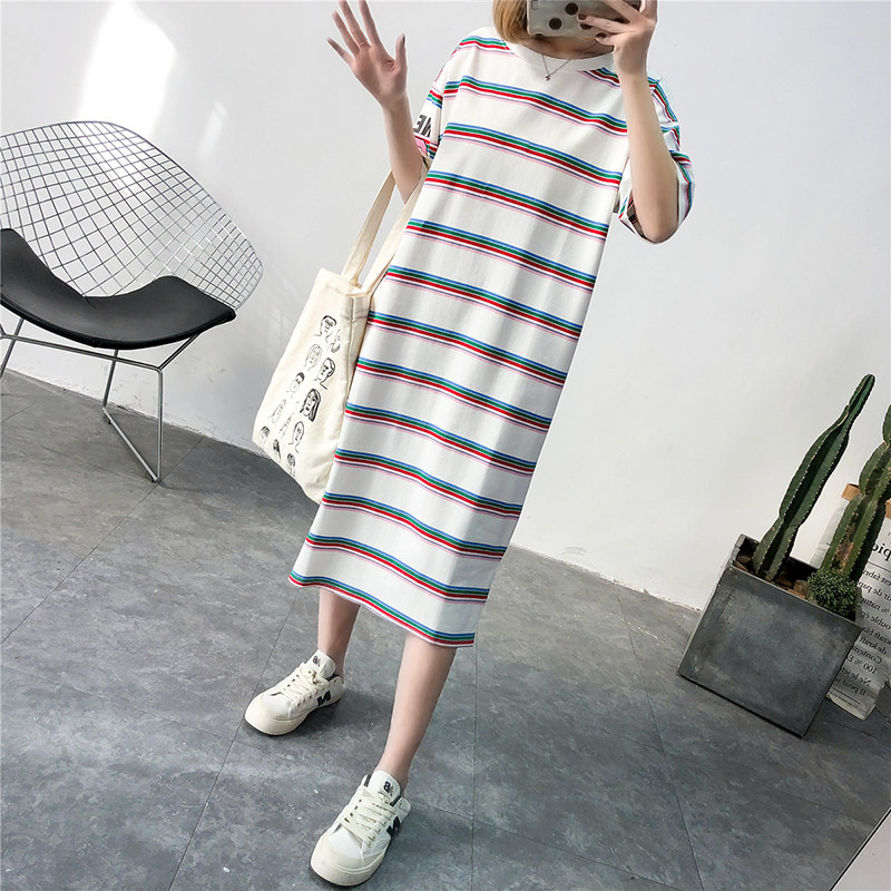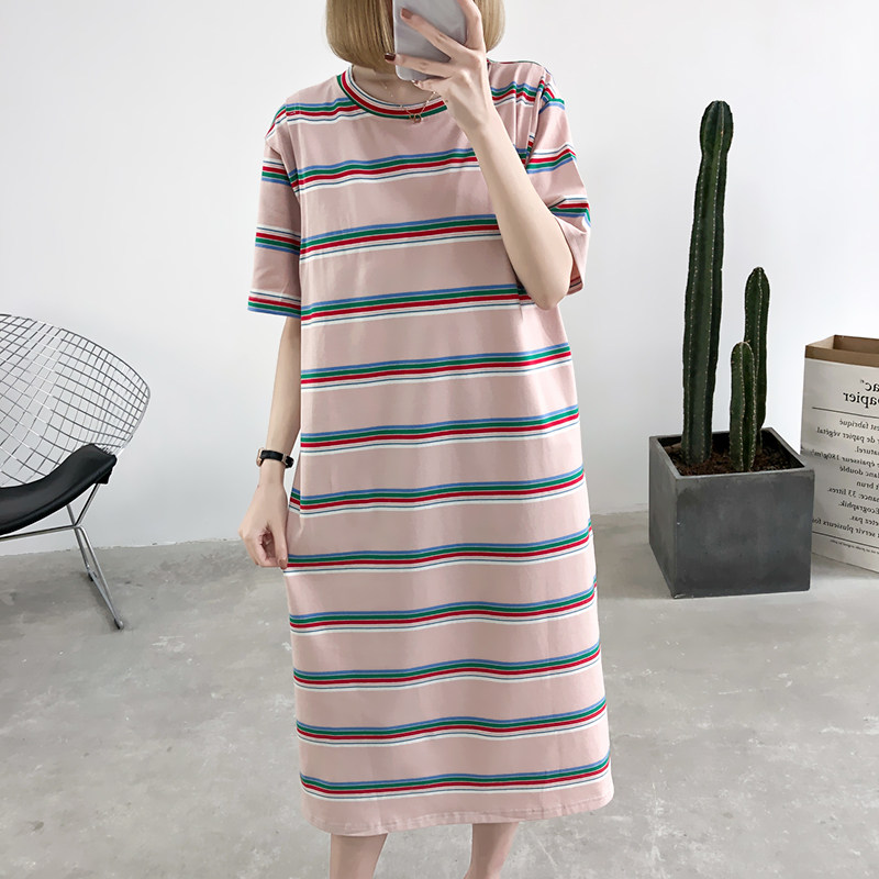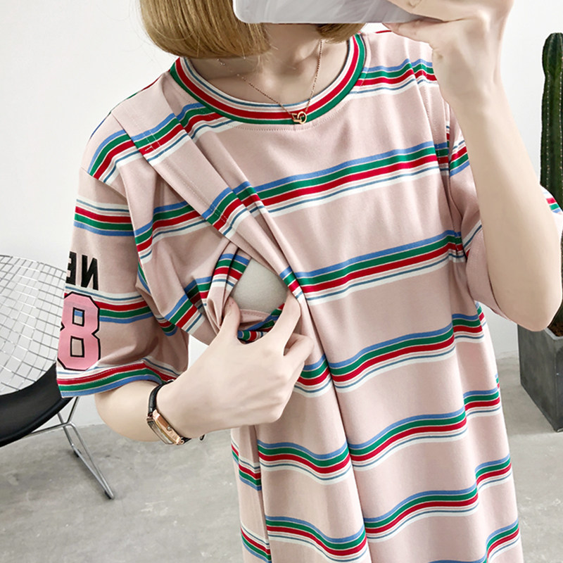 Pregnant women Yangdress Summer Lactation Dual use 2022 new long version over knee T-shirt dress Summer pure cotton striped breast-feeding dress
