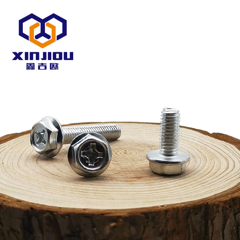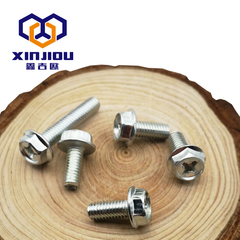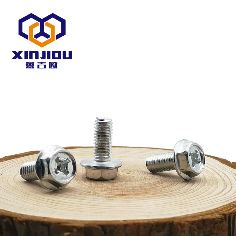 Galvanized outer hexagonal flange screw iron cross slot flange face hexagon with cushion bolt flange screw m4m5m6