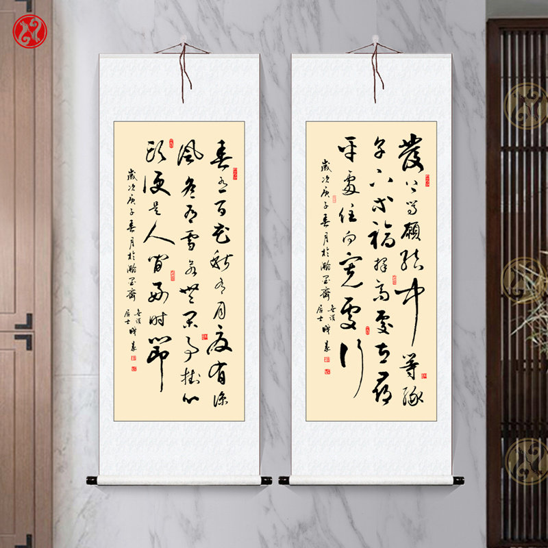 Tianjin vertical handwritten authentic calligraphy framed scrolls hanging drawing drawing room hanging axis office decoration painting
