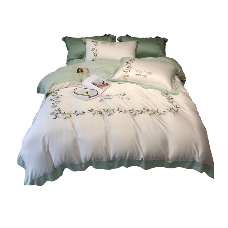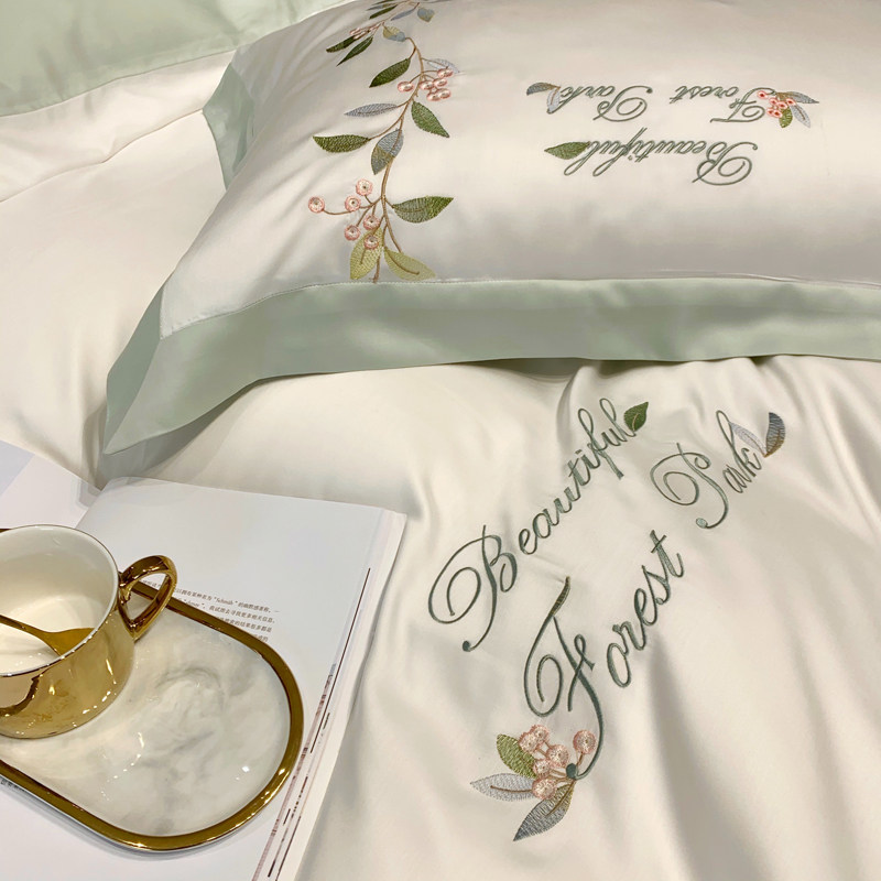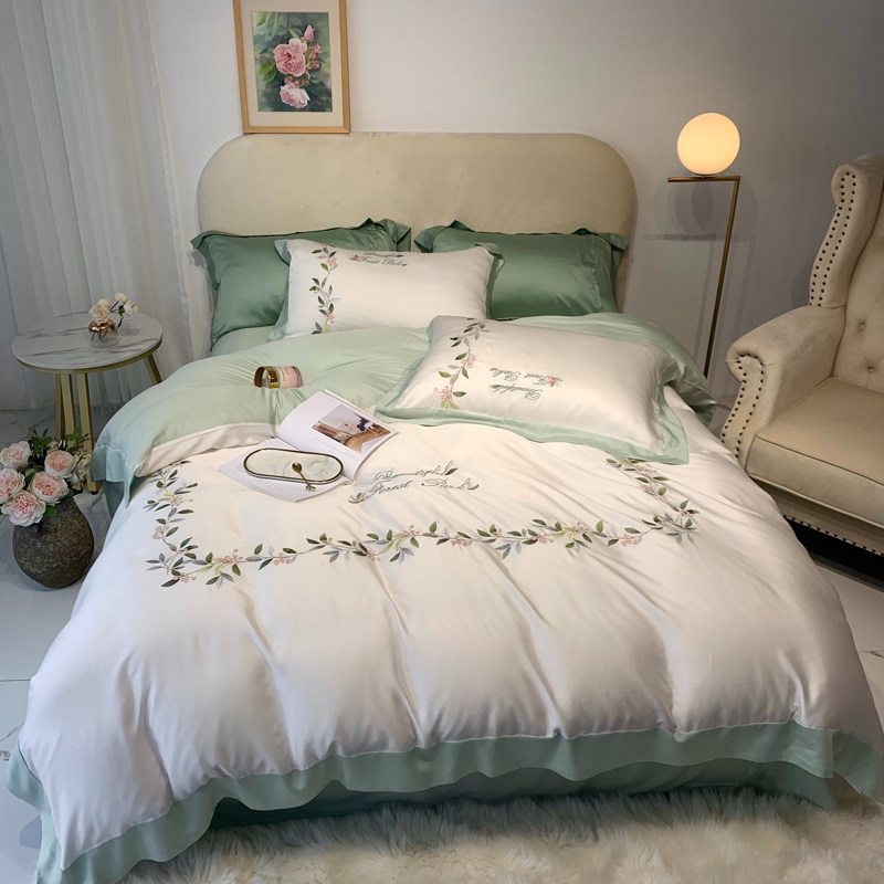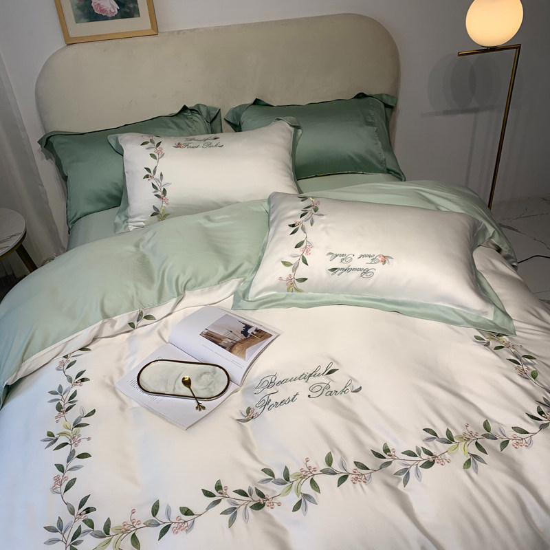 American embroidery pastoral ice silk bedding summer silk slippery naked sleep 60 imported Tencel bed sheets four-piece set