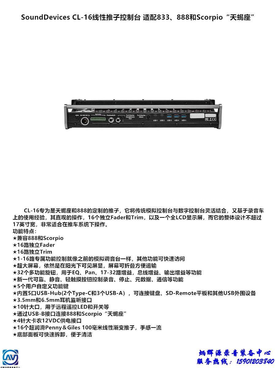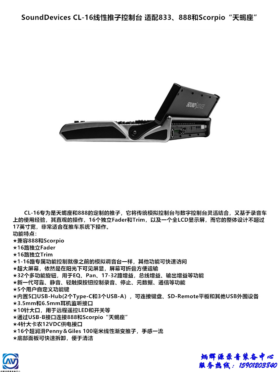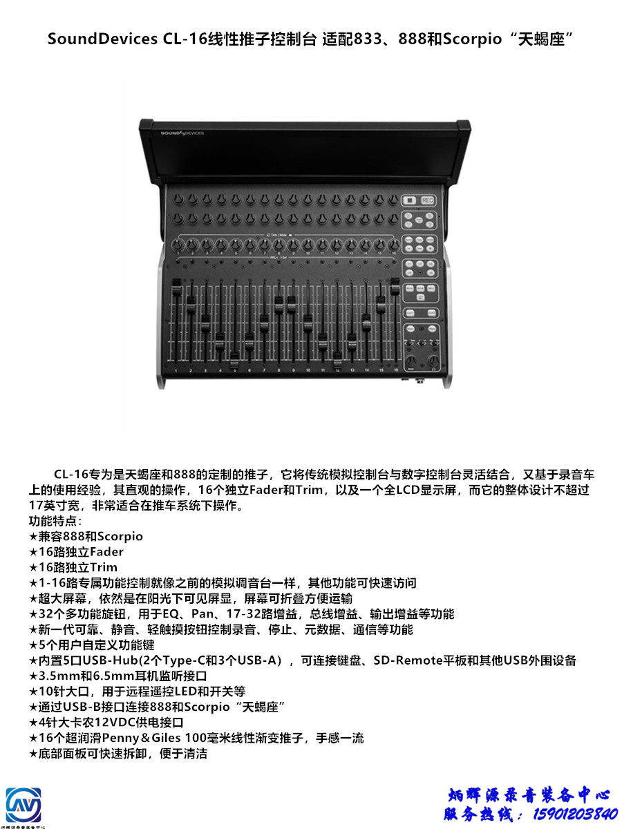 SoundDevices CL-16 Linear Fader Console compatible with 888 Scorpio Scorpio