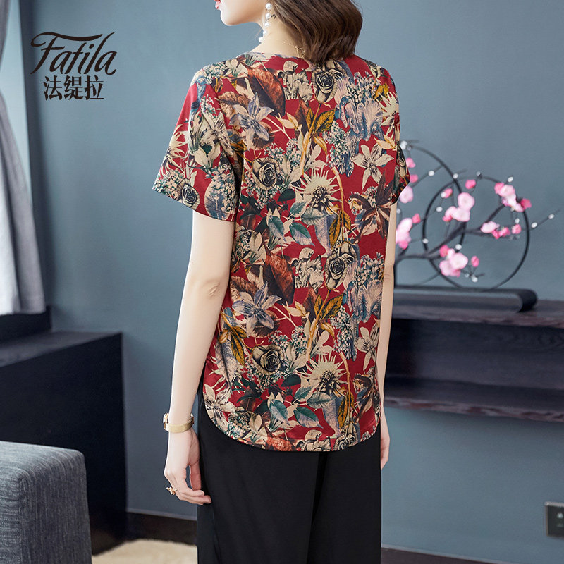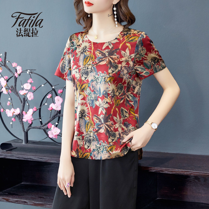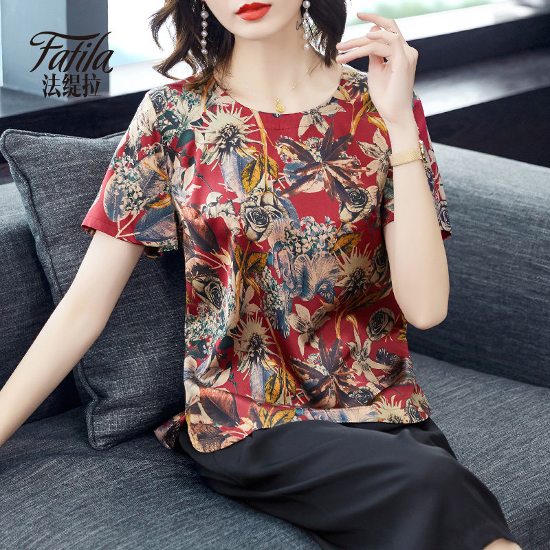 Retro Port Taste Middle Aged Mother Weighs Real Silk Shirt Woman Printed Satin Mulberry Silk Blouse Big Size 2022 New