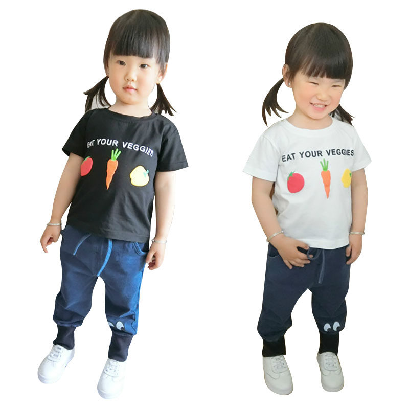 Children short sleeve T-shirt summer dress new male and female child baby cute letter fruit vegetable child clothing blouse