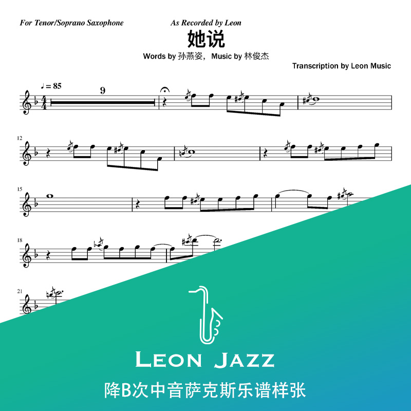 She said saxophone sheet music JJ Lin Chinese pop songs shopkeeper demonstration stave sheet music accompaniment