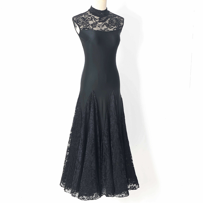 Exotic dance No sleeves Hip Small High Collar Lace Hollowed-out Double Pendulum Morden Practice Foreign Dress Spot W15055