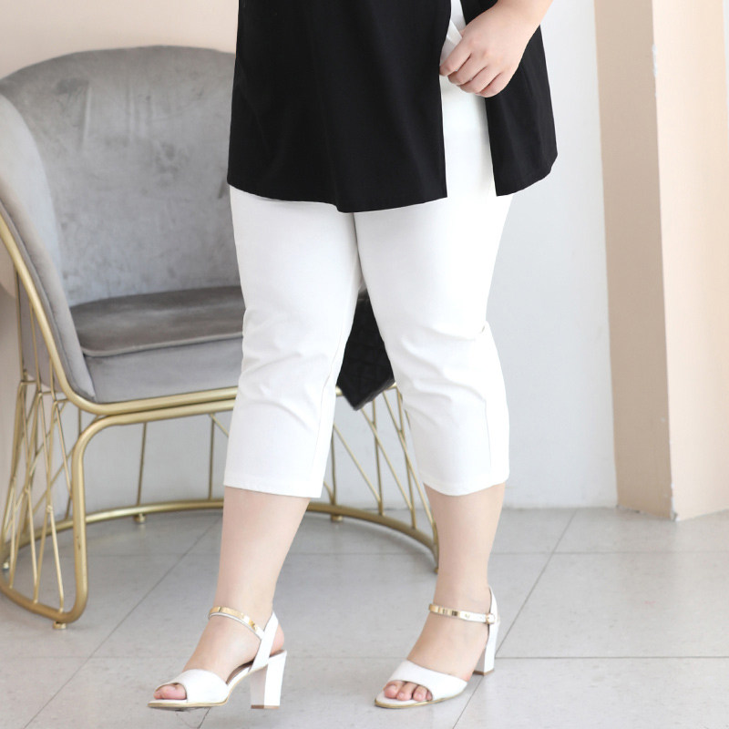 Large Size Seven Pants Woman Fat Mm Summer Pants Plus Fat Up Yard Lady High Waisted White Casual Pants Fit