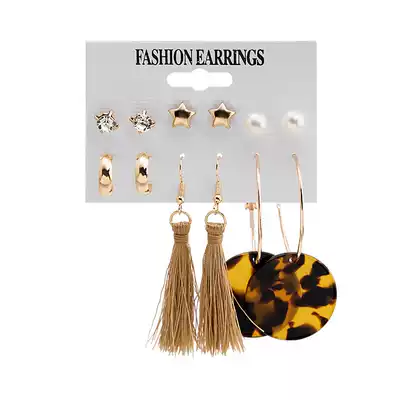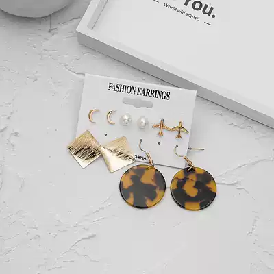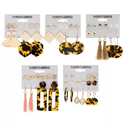 European and American popular suit accessories exaggerated personality acetic acid metal geometric Pearl many pairs of earrings card ear needle female