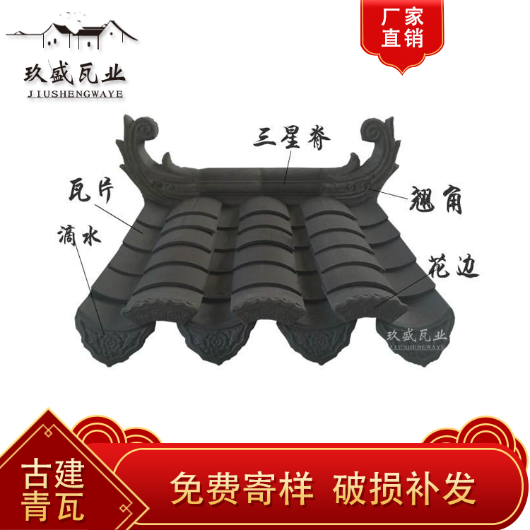 Qingwa ancient building Antique courtyard temple Chinese decoration Roof clay tile Ancient building tile decorative tile Small green tile gray