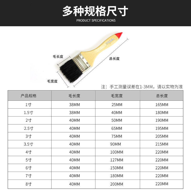 Brush paint brush hard hair black brown hair industrial household cleaning sweep dust wood handle 12345678 inch