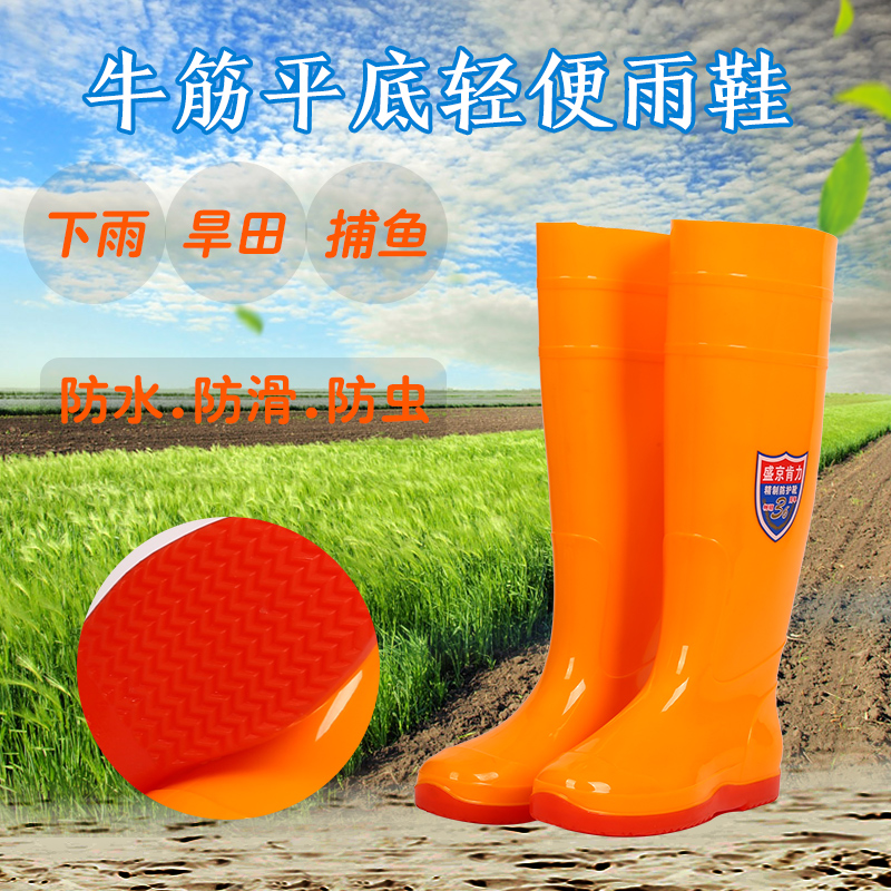 Flat-soled light rain boots men's high-top rain boots beef tendon bottom rushing sea rubber overshoes extra high water shoes fishing shoes rice transplanting shoes
