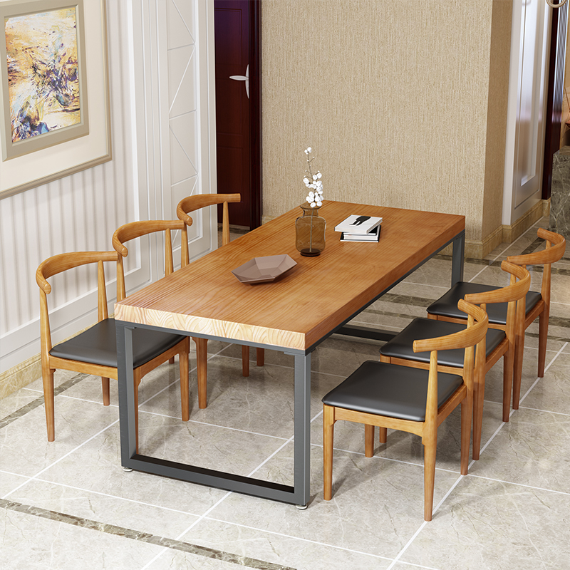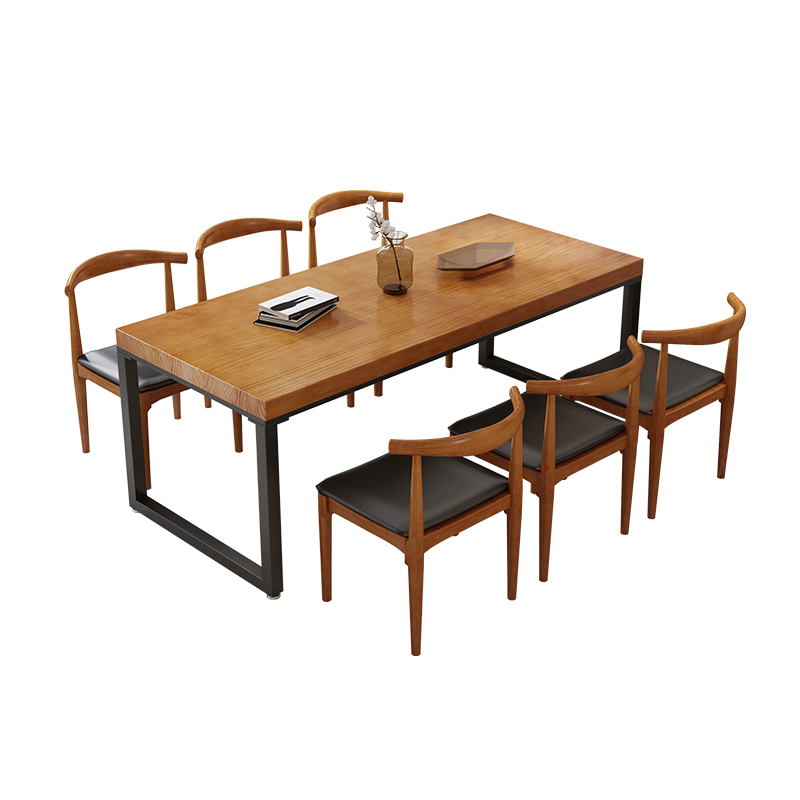 Custom Nordic iron art leisure dining room dining table and chair combination simple solid wood table cafe reception negotiation table