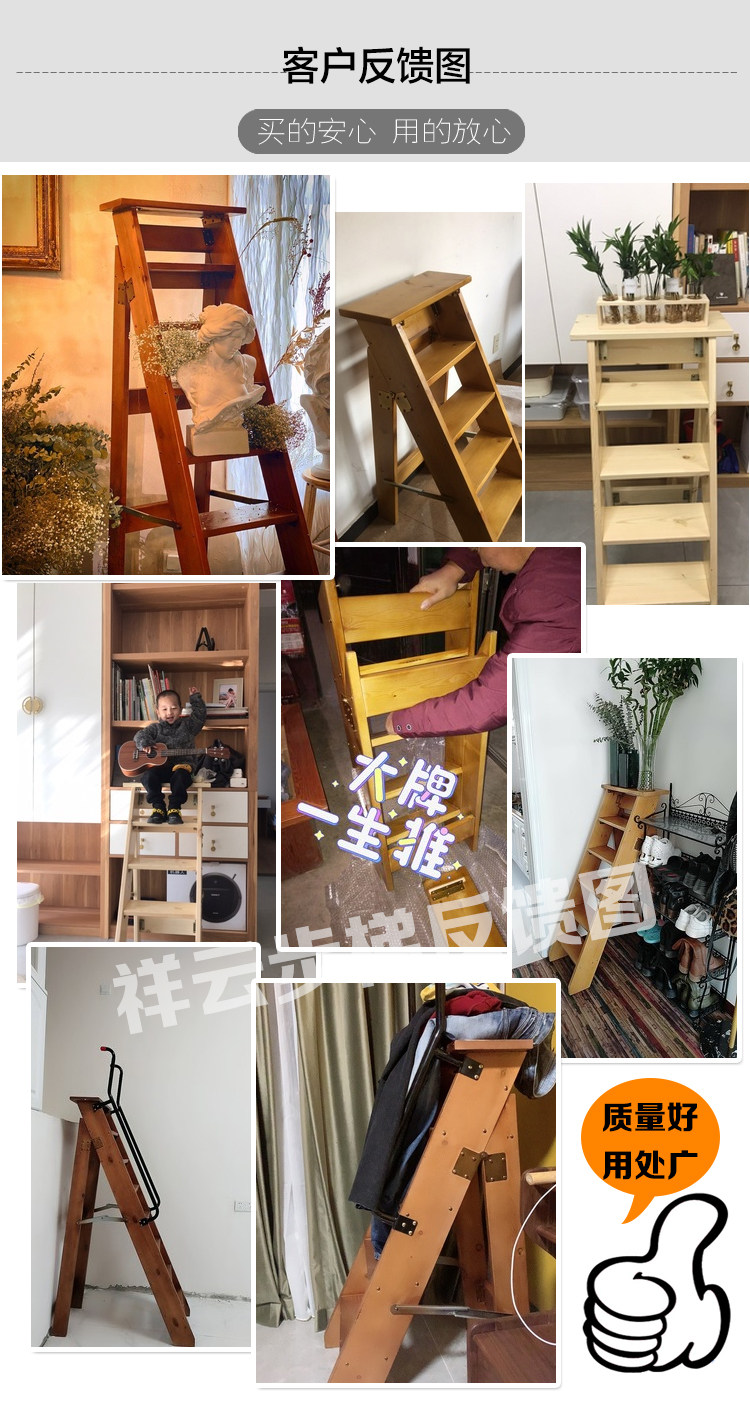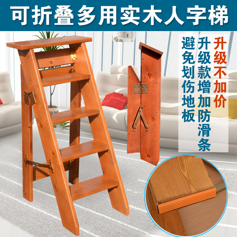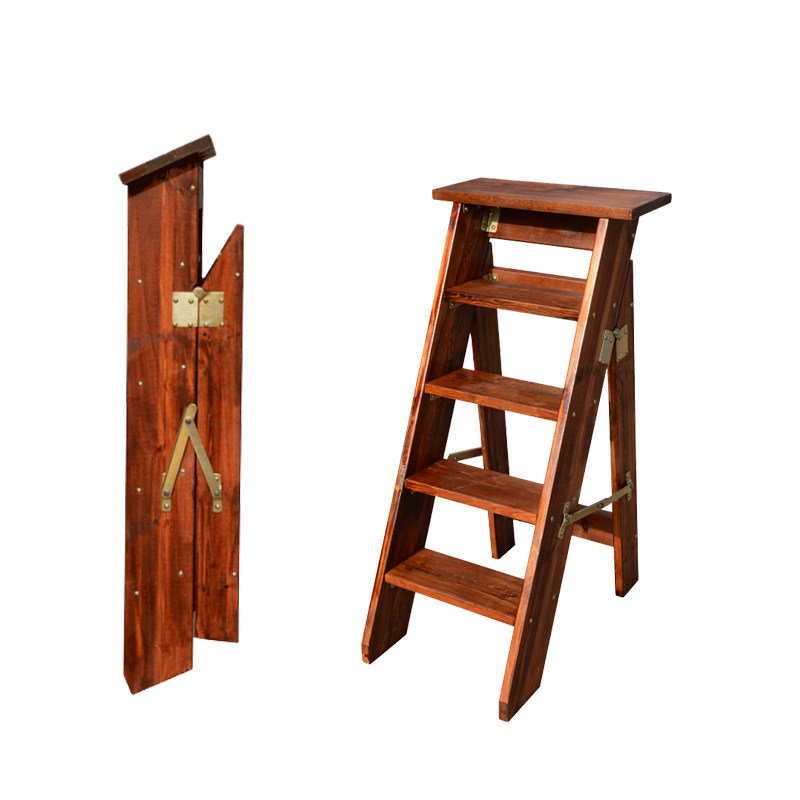 Thickened single-sided herringbone ladder solid wood household folding mobile multi-functional five-step flower rack storage attic wooden ladder