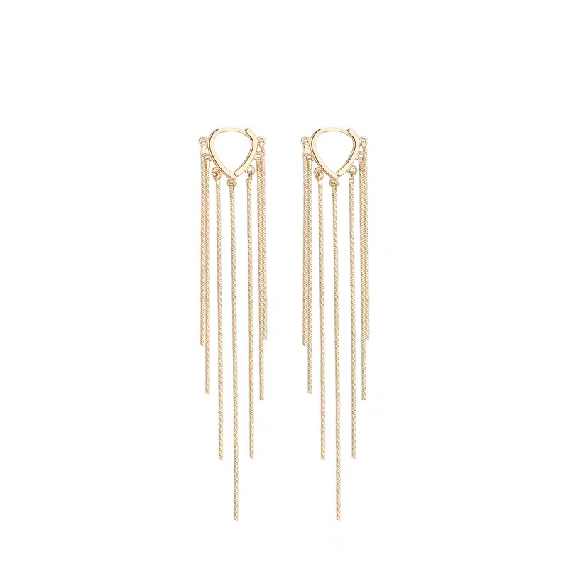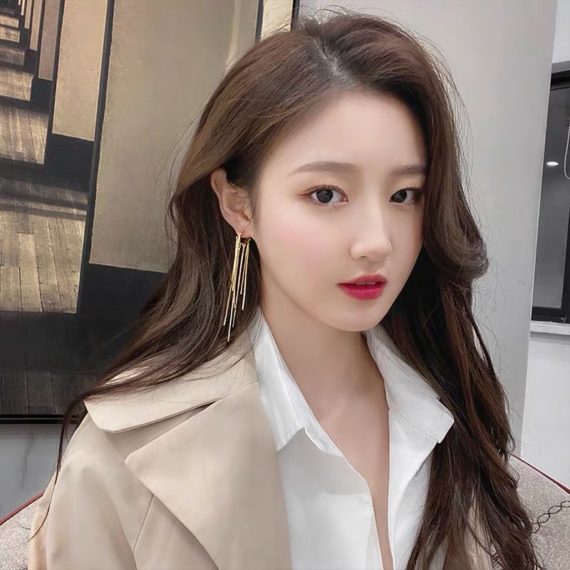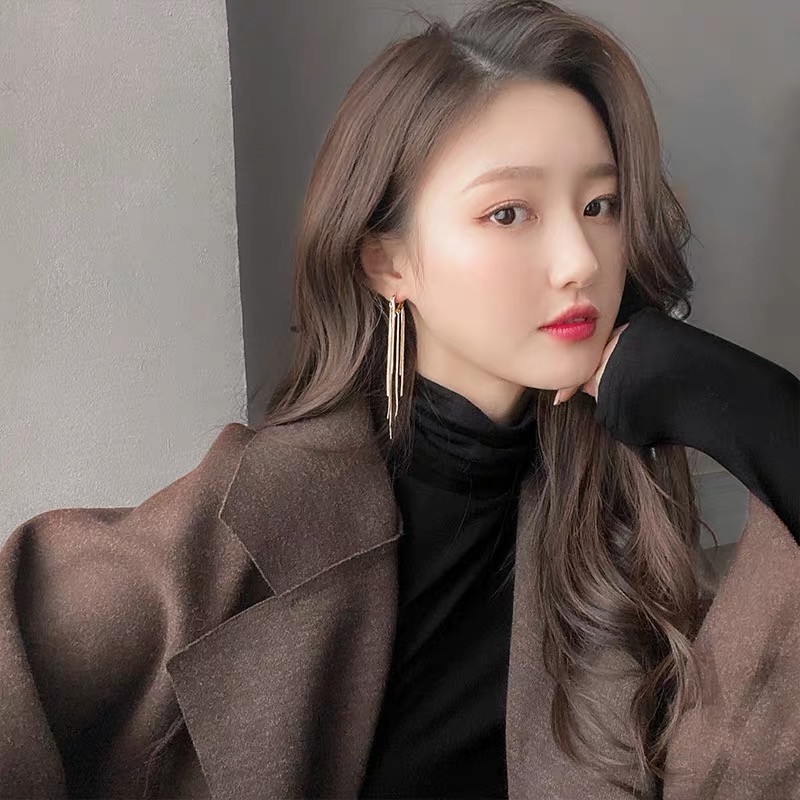 Long Tassel Earbuckle Temperament Silver Needle Face Thin Earrings Korean Temperament 2022 New Trendy Internet Celebrity Earrings Female