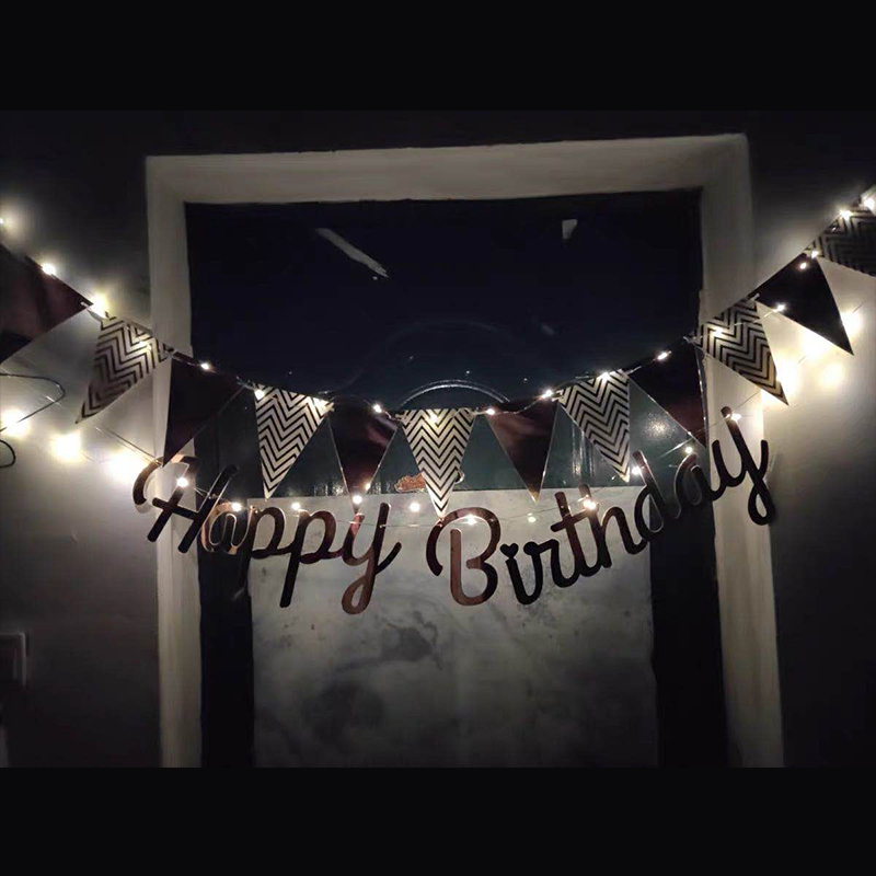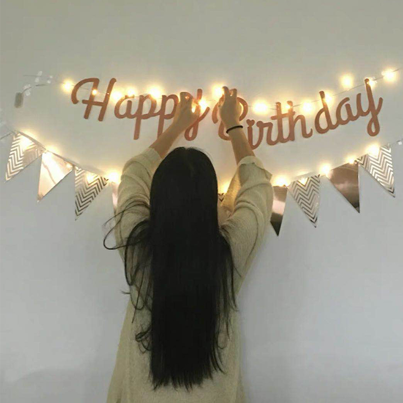 Golden birthday flag + 1 meter photo clip light + light string 2 pieces of battery tape
