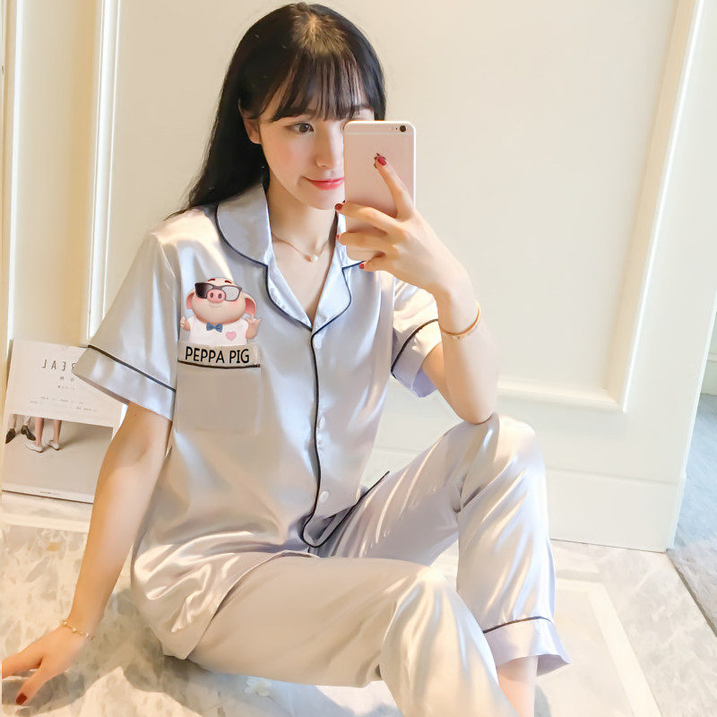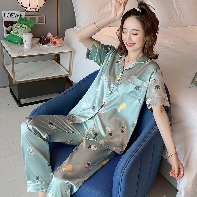 Pajamas women's summer ice silk thin section long-sleeved trousers two-piece suit spring and autumn can be worn outside women's silk homewear